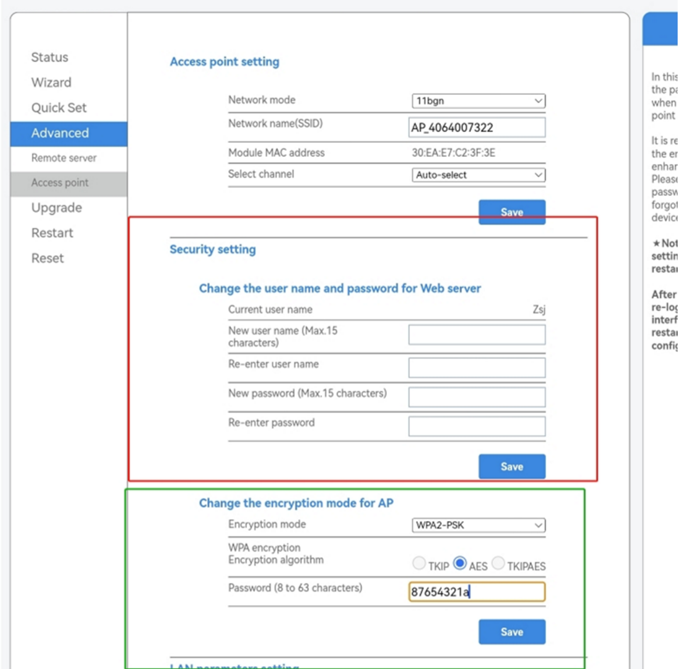 Below is the interface of new firmware version. It shows how to change the password.